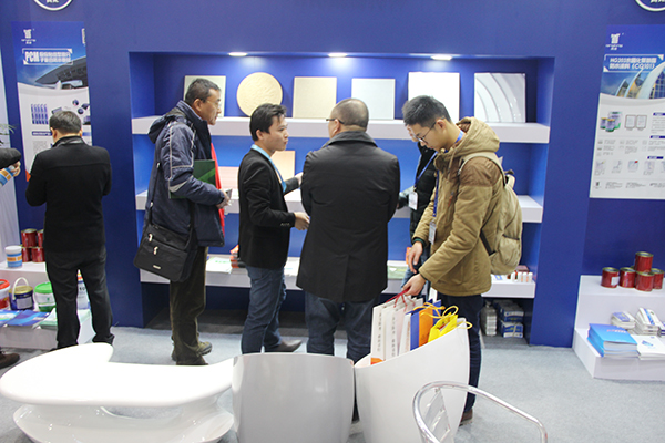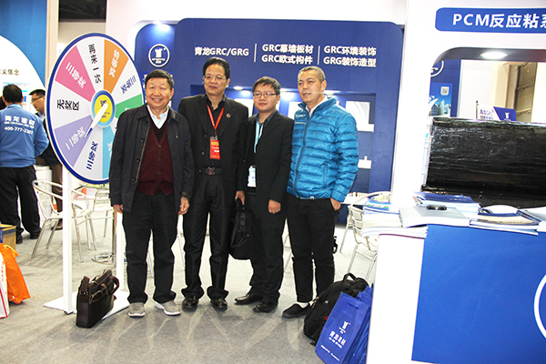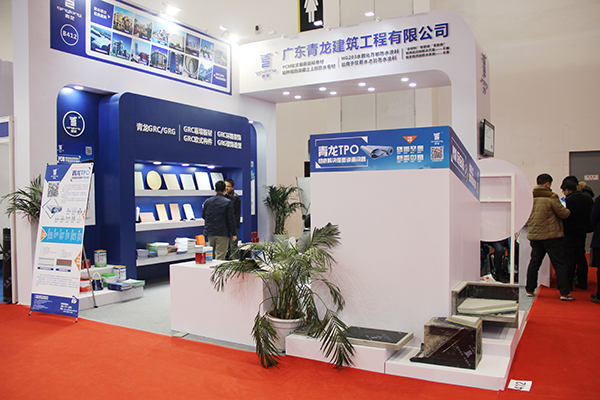青龍展臺位于B區(qū)412號展位,以其一貫的藍色元素,貫穿綠色環(huán)保理念,詮釋著防水行業(yè)的發(fā)展方向。展會過程中,深圳防水協(xié)會會長瞿培華、深圳防水協(xié)會秘書長秦紹元等防水專家專程到青龍展位參觀,青龍董事長宋總親自講解青龍相關防水材料及GRC構件。