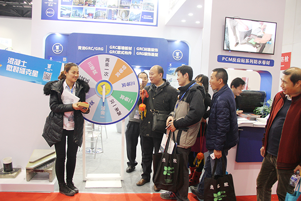 青龍展臺設計緊密圍繞當前防水前沿"排防結合、剛柔相濟"防水系統(tǒng)治理新理念展開,明顯位置擺放了青龍受歡迎,也是防水性能好的兩大防水材料CQ101防水涂料和PCM防水卷材,同時設計精致的防水模型讓參會嘉賓對青龍防水材料的設計及施工直觀,一目了然,方便了客戶對防水系統(tǒng)的現(xiàn)場體驗。青龍專業(yè)技術員也為嘉賓現(xiàn)場施工演示,解說,讓參會嘉賓感受到理論與實踐的兩重培訓。許多參展商專程來到青龍展位參觀,洽談合作共贏事宜。